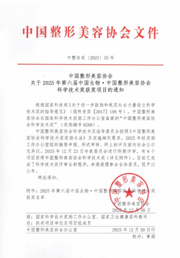 12月23日,“2025第六届中国生物·中国整形美容协会科学技术奖”终评在北京举行。由重庆星荣整形外科医院申报、李世荣教授领衔主编的《中国整形美容外科史》研究项目,在参评的公立医院项目中脱颖而出,以高分斩获“中国整形美容协会科学技术奖”一等奖,成为本年度医疗美容行业具有里程碑意义的学术成果。