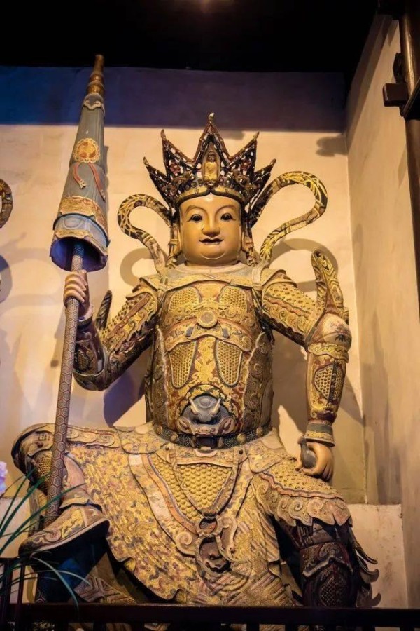 四大天王俗称“四大金刚”,传承自佛教经典,须弥山腹藏着一座神秘之山——犍陀罗山,而这座山上矗立着四座山头,由于四位天神守护着四大部洲,因此又得名护世四天王。四大天王的神像常常庄严地屹立在净土宗、禅宗佛寺的第一重殿两侧,这一殊荣之地,又被赞誉为天王殿。