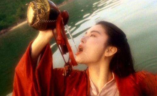 青霞喝酒出自林青霞饰演的东方不败,张敏回眸就是张敏饰演的赵敏了。在电影《倚天屠龙记》中,赵敏和张无忌酒楼第一次相遇,赵敏在马上回眸看了一下张无忌,嘴角带着高贵的微笑。