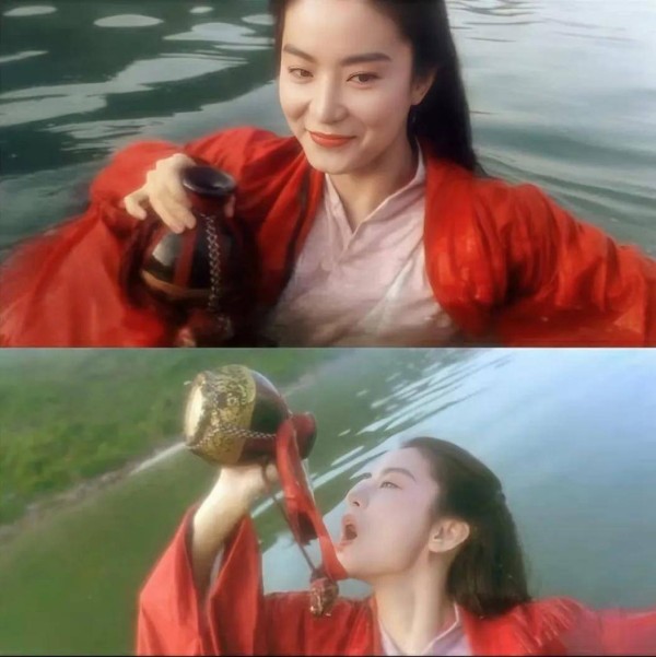 尤其是仰头灌下一壶酒这个场面,这其实是男主令狐冲的主场,却因为林青霞演技,造就了不能忘记的经典名场面。