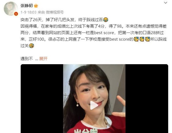 让人想起了另一位女演员张静初,她也是在直播中备考研究生。