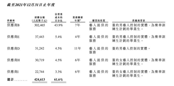 而在其提供的供应商信息中,“供应商B”也被外界猜测为就是王一博。2021年,供应商B的交易金额占总营业成本的百分比达到43.9%。招股书显示,2020年、2021年至2022年4月30日,乐华娱乐来自“供应商B”的收入增长占整体收入增长的80%以上。