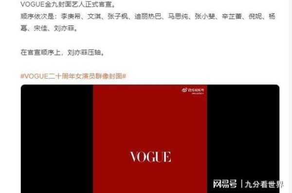 虽然不知道VOGUE的评判标准,但是很多人认为是“国际影响力>奖项>流量”。