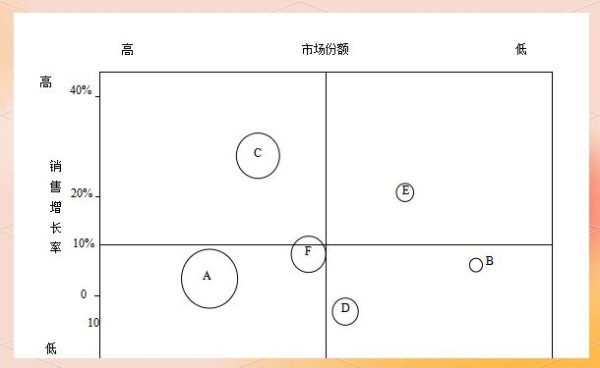 以销售增长率为纵轴,相对市场份额为横轴,构建四象限图。通过将各业务单元或产品置于不同的象限中,可以直观地展示其市场地位和发展潜力。这一图表工具不仅有助于企业了解各业务单元的相对表现,还能为企业制定策略提供有力的支持。10%和10%作为区分高低标准的分界线,将市场划分为四个不同的象限。