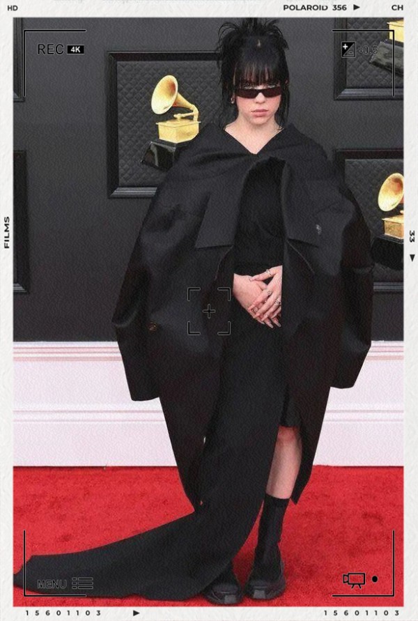 奥利维亚·罗德里戈以七项提名领跑格莱美,她的热门单曲《驾照》不仅为她赢得了年度最佳唱片和最佳歌曲的提名,更助力其首张专辑《LP Sour》获得年度最佳专辑的提名。比莉·艾利什的红毯造型令人眼前一亮,她身披一件西装斗篷,内搭单边拖地长裙,再配上时尚的靴子和小太阳镜,展现出酷炫且不失个性的全黑风格。