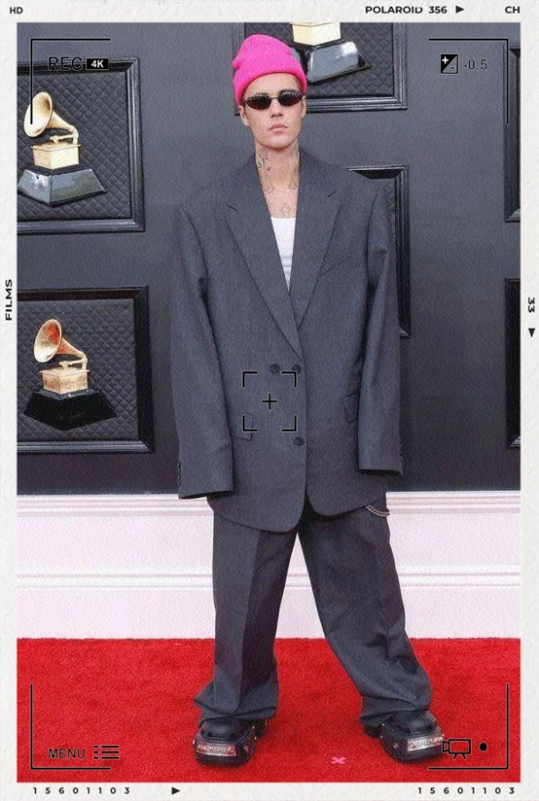 贾斯汀·比伯在格莱美颁奖礼上的着装选择颇为引人注目。他身着一套宽大松垮的灰色西装,内搭简洁的白色背心,再配上小太阳镜、一顶亮粉色的无檐小帽和厚底靴,整体造型透露出一种随性不羁的慵懒风。海莉与比伯携手走红毯,她身着一袭白色丝绸长裙,设计简约而不失大方,金色项链与中分发髻相映成趣,宛若降临人间的天使。