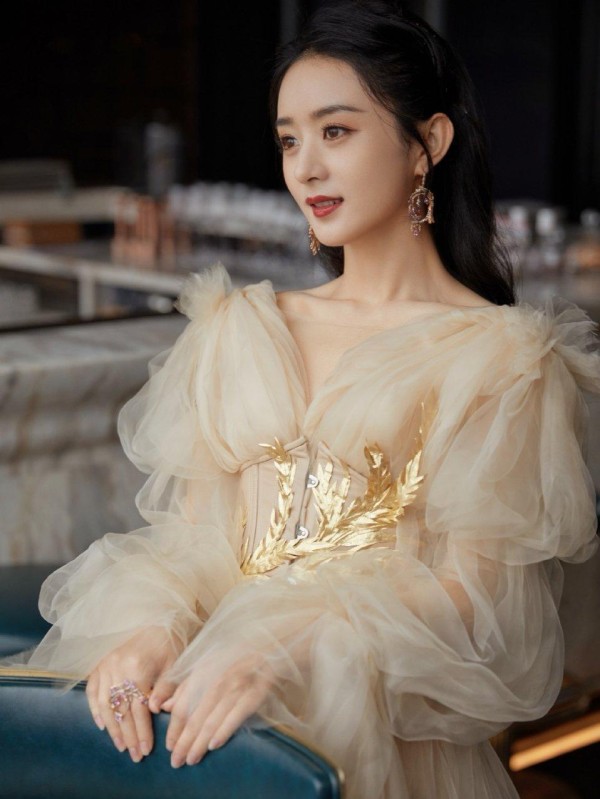赵丽颖这套薄纱礼服还有腰间的金色点缀,再加上她的发型设计,尽显温柔气质,妥妥的公主本人!含情脉脉的眼神也太温柔了吧!是迪士尼在逃公主没错了啊!
