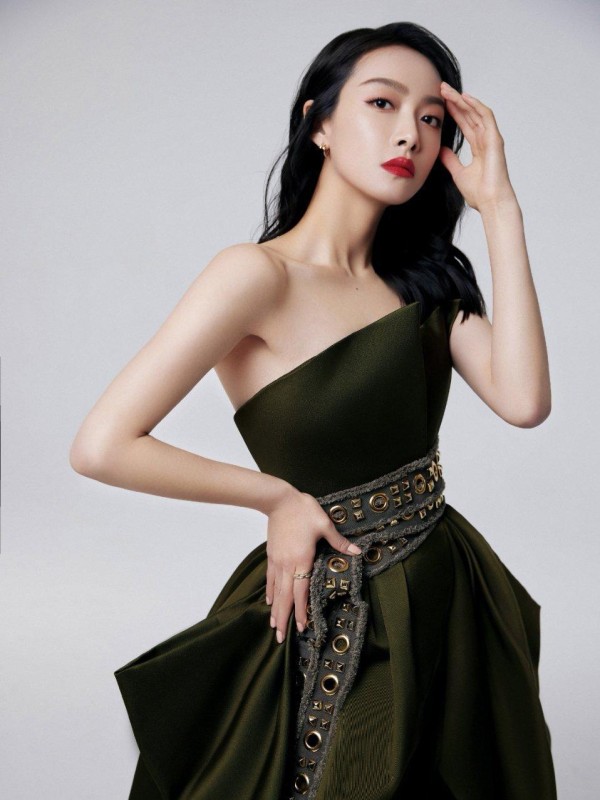 茜茜今天一如既往的飒,军绿色的礼服是加上独特设计的腰带,再加上如火般的大红唇,优雅的同时又有一股英气所在。精简配饰,简约的礼服,简单但不单调,这就是这套礼服的精髓所在吧!