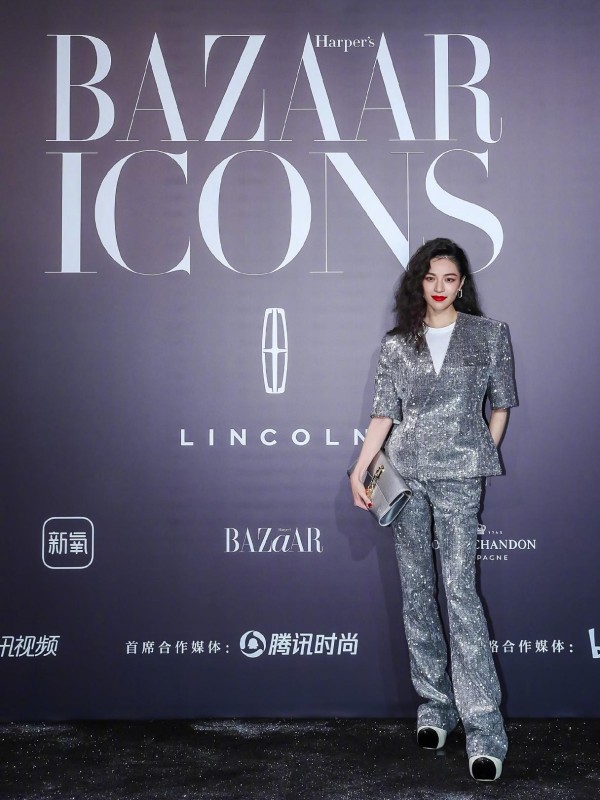 钟楚曦今天也是让人眼前一亮呀!八九十年代的大波浪烫,再加上一抹红唇,真的有复古那味道了,今天的礼服设计也很让人惊喜,浑身都是闪闪亮片的西装套装,一点也不失气场,超级霸气,虽然一身闪片,但是一点也不浮夸。