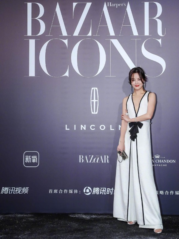 辛芷蕾今天这套白色深V礼服,更多衬得她高贵又大气,温婉大方。