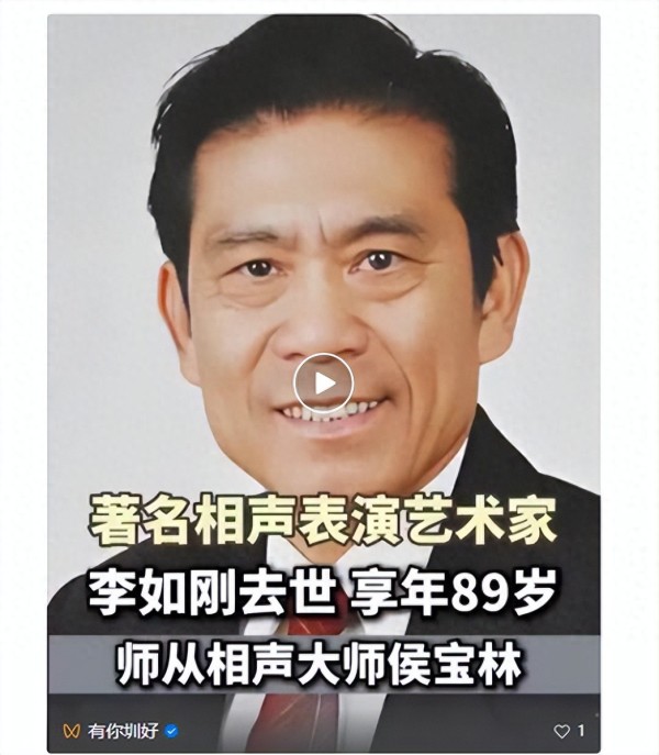 著名相声表演艺术家、侯派相声优秀传人李如刚先生因病医治无效,于2026年1月4日上午6时23分在石家庄逝世,享年89岁。
