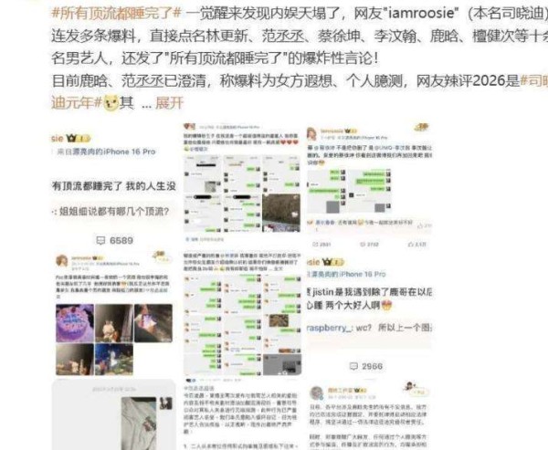 网红司晓迪这次的言论真是引发了巨大的轰动。2026年元旦刚过,她就在社交平台上发布消息,表示自己已经30岁了,且已睡遍所有顶流,称自己的人生没有遗憾了。为了证明这些话,她还晒出了各种聊天记录、合照和录音,其中涉及了10多位顶级流量明星。这件事迅速引起了广泛关注,我们来一起聊聊发生了什么。