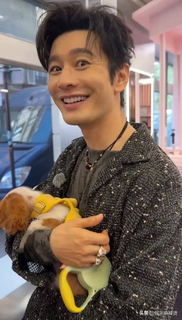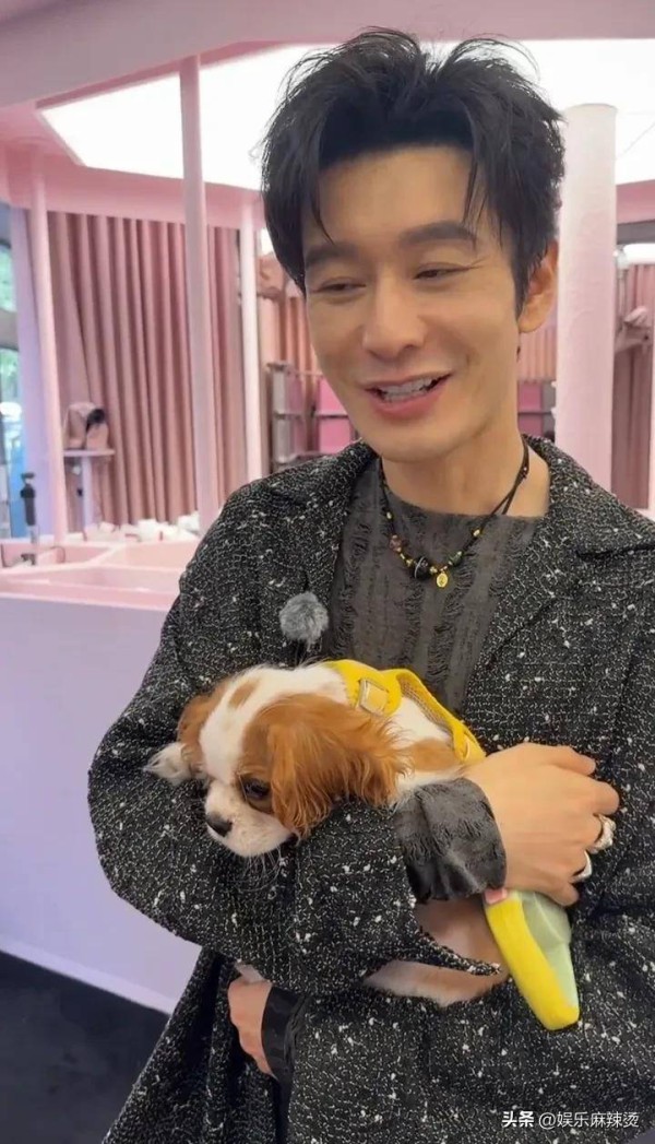 回到店里时,黄晓明抱着一只小狗,仿佛是门店的代言人,吸引旁人的目光,并与顾客合影留念。