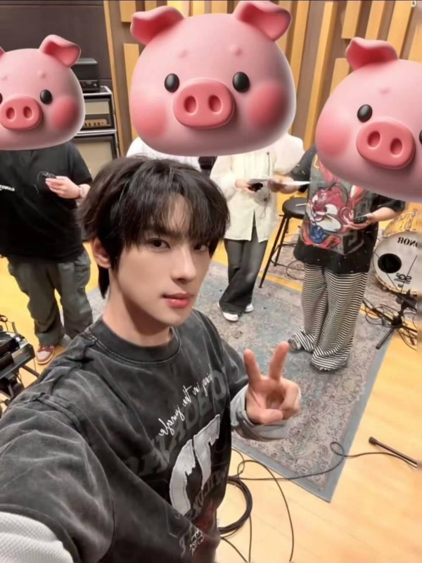 颜安和工作室的相处模式简直是内娱一股清流,完全没有职场的距离感。他在新歌里特意加入工作人员的和声,把身边人的声音藏进作品里,这份“亲人式”的羁绊让粉丝直呼“太好嗑”。网友调侃:“别人工作室是打工,他们是家人团建,建议直接出道发单曲,姐姐们的和声比主唱还抓耳!” 合照里颜安站在中间比耶,女生们围在身边笑盈盈,配文“姐弟四人组”,评论区秒变玩梗现场:“这配置能直接拍《流星花园》2.0,颜安就是被姐姐们宠着的团宠弟弟!”