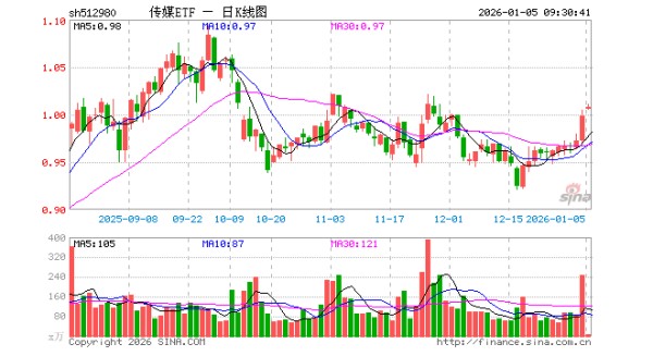 传媒ETF(512980)开盘涨0.80%,重仓股分众传媒跌0.41%,巨人网络跌0.42%