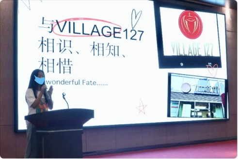 参加公益活动的小雪在舞台上做分享