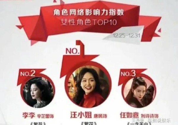 唐嫣在《繁花》中饰演的“汪小姐”成为了最近影响力最大的女性角色,力压了同剧中辛芷蕾饰演的“李李”和在《一念关山》中出演“任如意”的刘诗诗。