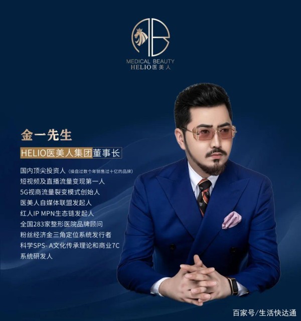 目前,金一先生已经带领HELIO 医美人集团,通过短视频、直播、品牌以及社群运营,运用“医美人平台-全网主播孵化-主播培训上岗一短视频/直播”方式,帮助医美机构、医生、达人们打造个人IP,让IP成为自带流量的导体,实现粉丝变现,两年实现28亿利润。