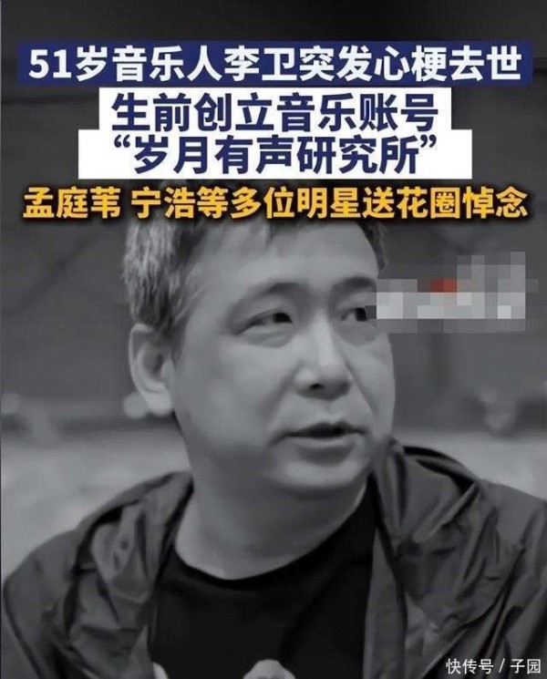 同样在12月30日,媒体从李卫的朋友处得知,李卫这位著名音乐人因突发心梗,于12月25日在北京去世,享年51岁。这个消息让圈内外的许多人都感到深深的悲痛,孟庭苇、导演宁浩等老朋友纷纷送上花圈以示悼念。