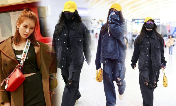 她身穿黑色牛仔套装,柠檬黄鸭舌帽和手提包绝对是亮点,仿佛是黑夜中的一盏灯,让人感觉轻松舒适,同时也有一种酷帅的反差感!