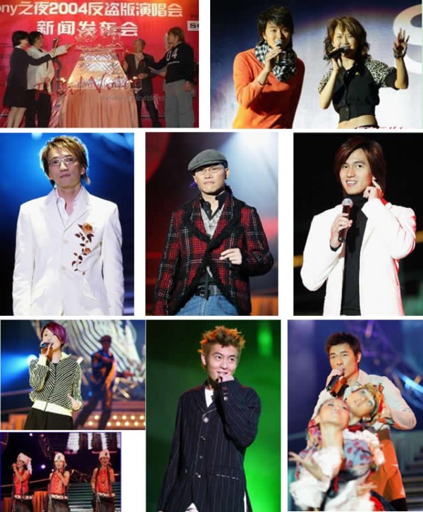 作为上海亚洲音乐节的压轴好戏,每年一度的反盗版演唱会不但引起了来自海内外各界人士和广大媒体的关注,其鲜明的反盗版主题更是吸引了众多艺人的参与。本年度“Sony之夜2004反盗版演唱会”的歌手阵容亦为可观,聚集了来自中国大陆和港台地区的众多知名艺人将在今晚共同登台,携手唱响“反盗版”的主题,希望用实际行动唤起歌迷对反盗版的支持,并积极参与其中。