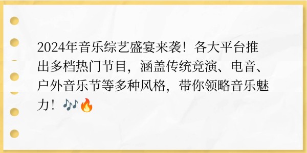 2024年,音乐综艺市场异常火爆,各大平台和卫视纷纷推出了多档音乐综艺节目,以下是一些热门的音乐综艺: