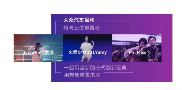 大众品牌logo换新邀请众多明星发起的“重置”活动,精准抓住了90后的感情落点。以广播体操、网络形象、那些花儿等90后学生时代的回忆切入,何展成、火箭少女、MrMiss组合等年轻明星,以当下潮力元素注入“旧记忆”,唤醒年轻用户的情感诉求。