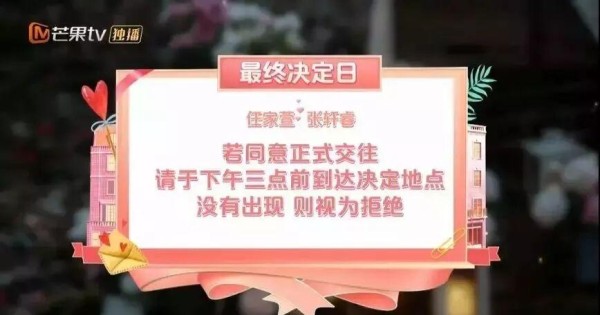 该话题源于综艺《女儿们的恋爱》收官时的“最终决定日”环节。若双方均同意进一步发展,需在次日三点准时赴约指定地点;若未能如约而至,则默认为拒绝。