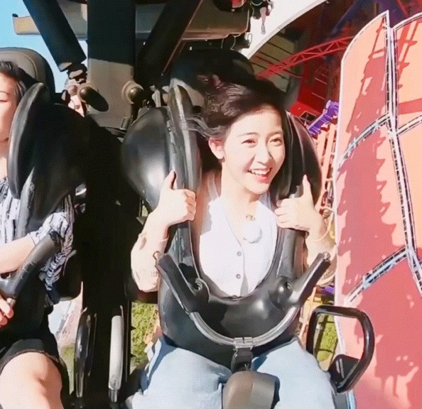 还有赖美云坐过山车的时候,过山车在飞驰,而赖美云居然坐在上面还可以保持微笑,完全没有露出害怕的表情,我感觉赖美云这样笑的时候,居然还挺好看的,又可爱又俏皮,总是让人忘了这个时候她其实在坐恐怖的过山车。