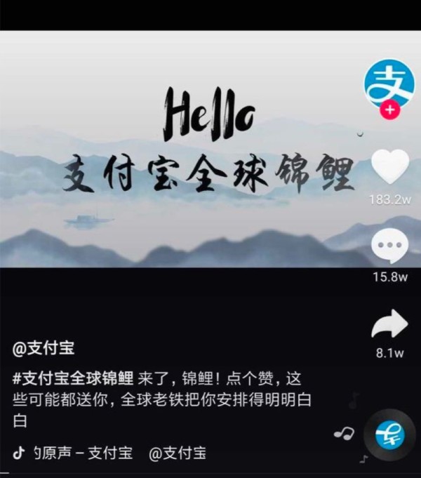 △抖音x支付宝锦鲤活动,BGM改编自《生僻字》