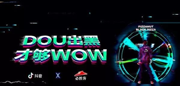 可以看出,在最初尝试与品牌进行合作时,抖音短视频平台也是将音乐内容作为为品牌增色的一部分。2017年10月底,抖音首次与必胜客合作,上线了主题为“DOU出黑,才够WOW”的挑战赛,为必胜客当季系列食品“WOW烤肉黑比萨”进行推广。