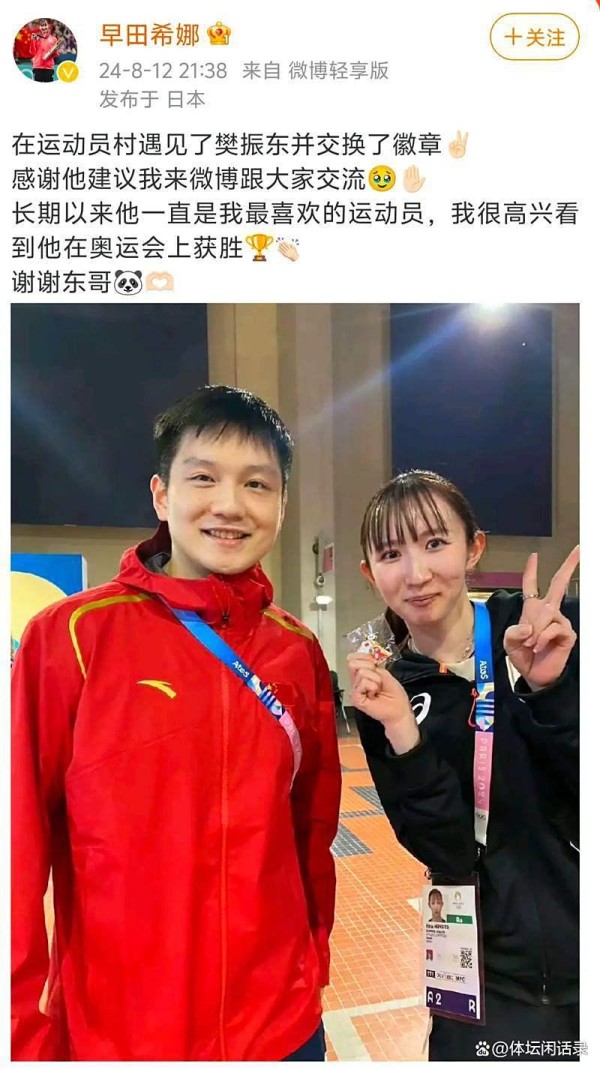 日本乒坛领军者早田希娜的"迷妹"身份最具戏剧性。这位曾多次在世乒赛阻击国乒的对手,却在巴黎奥运会后主动晒出与樊振东的交换徽章合影,配文"最敬仰的运动员"时,让无数球迷感慨竞技体育的最高境界——胜负之外,更有对强者品格的真诚致意。