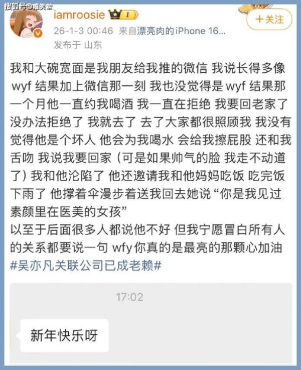 在她发布的图片中,KRIS也主动给她发消息,祝她新年快乐。