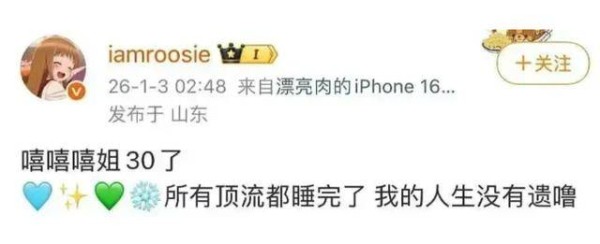 在那些男明星眼里,她是什么?是“解语花”,是“好哥们”,是“免费的午餐”,唯独不是一个需要被尊重、被爱护的独立人格。她以为自己在征服,其实是在被消费。男人们是在“充钱换体验”,而她是在“献身换勋章”。当她沾沾自喜于“小贾可以放心睡”时,或许对方只是把她当成了那个圈子里共享的某种“资源”。
