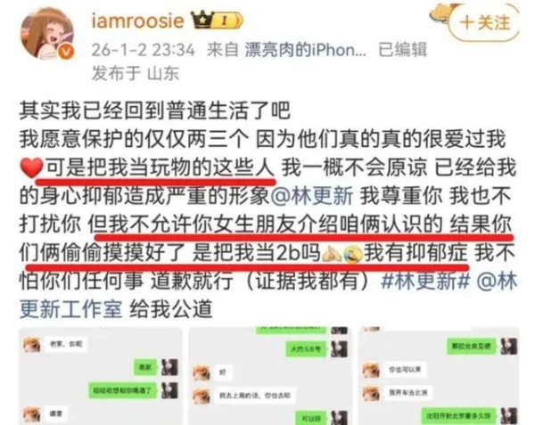 最狠的是,她直接曝光了疑似与鹿晗的亲密床照。这一招简直是杀人诛心,直接动摇了内娱最稳固的那座“深情男友”的丰碑。还有林更新、秦霄贤、李汶翰……这一长串名单,几乎囊括了半个娱乐圈的流量江山。