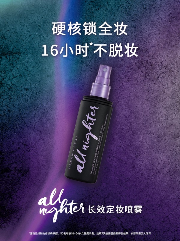 此次,Urban Decay 选择其当家明星产品- All Nighter长效定妆喷雾为开门砖,敲响与天猫国际妙颜社的合作的大门。Urban Decay长效定妆喷雾坐拥十年硬核定妆口碑,是美妆市场上不可或缺的一款可以有效锁住全妆的定妆喷雾。