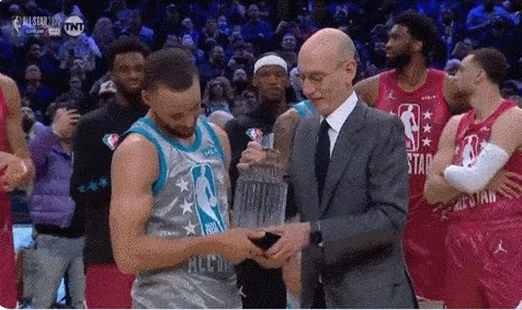 本场球,斯蒂芬-库里展现神奇的三分球手感,他全场30投17中,三分球27投16中,打破了全明星历史上的单场三分和总三分球命中数纪录,并且生涯首次拿到了全明星赛MVP,也是以科比名字命名的第一座全明星MVP奖杯。