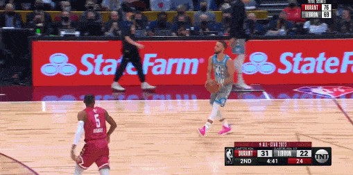 今年的全明星大赛,勒布朗队和杜兰特队都有大将缺阵,比赛开始后,球星们的表演欲望也并不是那么强。