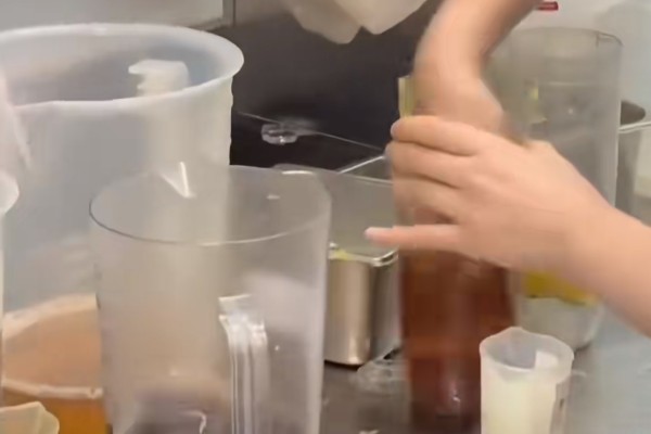 监控核查显示,该物料在拍摄结束后被当场倒掉,未对外销售,现场在拍摄结束后完成常规清洁消毒流程。事后该店员为掩盖错误称该行为系打烊后操作。该门店采用自动化设备制茶,所有原叶鲜奶茶的制作均通过扫码由机器自动化完成,实现人料分离。