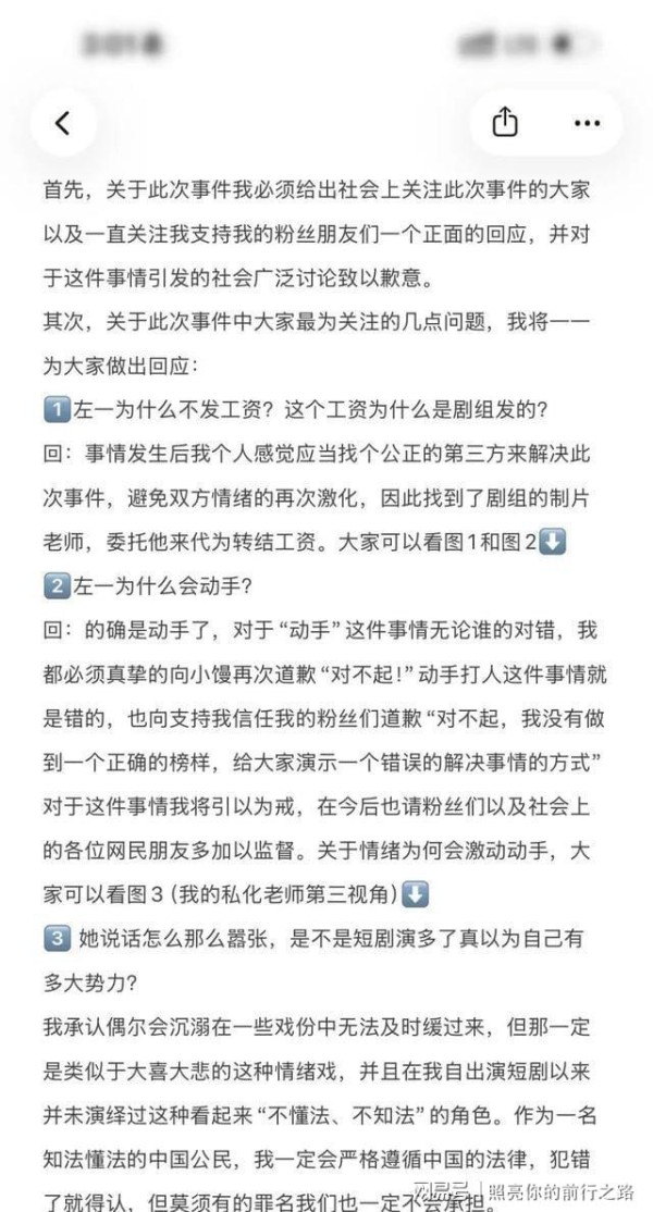短剧演员左一承认打助理致歉,双方达成补偿
