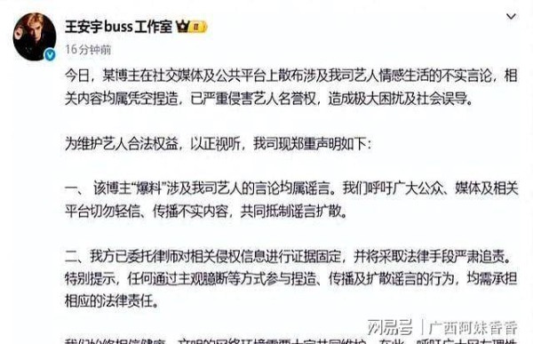 随着这一消息的传播,社交媒体上的讨论愈加激烈。许多网友开始翻查两位演员过去的互动,寻找任何可能的线索。有些人重温了他们在电视剧《小巷人家》中的合作片段,回顾那段充满青涩和甜蜜的时光;也有人发布了他们出席活动时的合影,并加上各种评论和猜测。虽然这些行为源于公众对明星的好奇,但无形中却加大了他们的压力。面对如此关注,王安宇和关晓彤似乎被迫置身于聚光灯下,任何细节都可能被放大解读。在这个过程中,关于明星隐私的边界问题再次浮现出来。公众的热情和媒体的敏感交织,形成了一幅复杂的图景。王安宇工作室发布声明显然是为了自我保护,明确表示他们不希望无端的猜测和谣言伤害到他们。