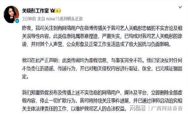 与此同时,关晓彤的工作室也发表了类似声明,强调他们对艺人名誉的保护。他们的反应既是对谣言的回应,也是在提醒大家,明星同样拥有隐私权,他们的人生不应仅仅成为公众谈论的对象。然而,围绕这段恋情的讨论,某种程度上也反映了社会对爱情的理想化和浪漫化。许多人在评论中表达了对青梅竹马式恋情的向往,认为这样的爱情纯洁、美好。王安宇和关晓彤在剧中的默契配合,让许多观众回想起那段美好的感情,进而对他们的现实生活产生了期待。这种期待本来是美好的,但也可能无意间增加了他们的负担。
