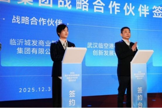 2025年12月31日晚,沂河宾馆1号厅内灯火璀璨,临沂城发商业管理集团有限公司(以下简称“城发商管”)与武汉临空港机器人产业创新发展有限公司、杭州电光火石文化发展有限公司、北京星悸娱乐有限公司、傲放影业有限公司在此隆重举行战略合作签约仪式。五方代表于跨年之夜齐聚一堂,共同见证在文化演艺、数字内容与科技融合领域协同发展的重要开端。