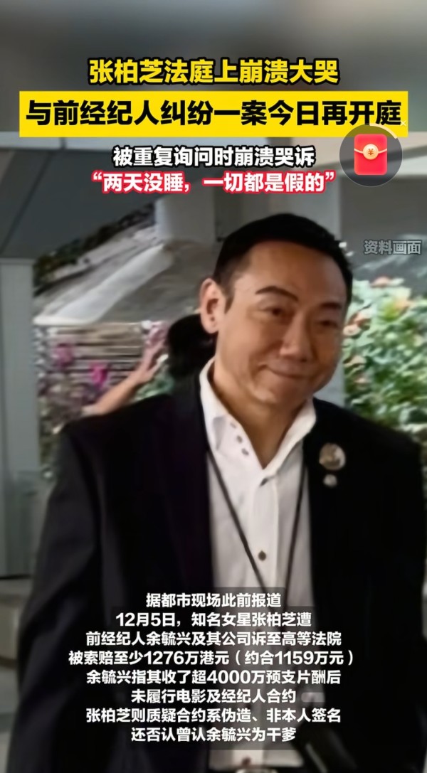 这事得从之前说起,12月5日的时候,余毓兴就把张柏芝告了,索赔至少1276万港元,理由是张柏芝收了超4000万预付片酬后,没履行电影和经纪合约。而张柏芝这边呢,一口咬定合约是伪造的,签名也不是自己的,还否认余毓兴是她干爹。