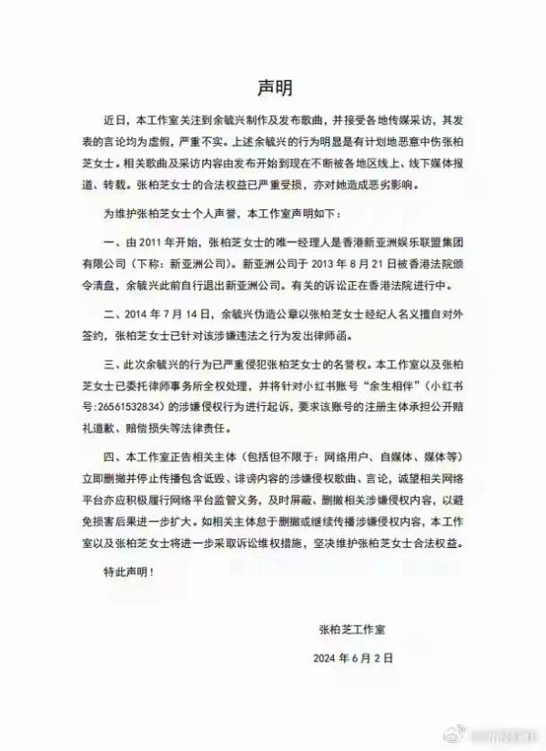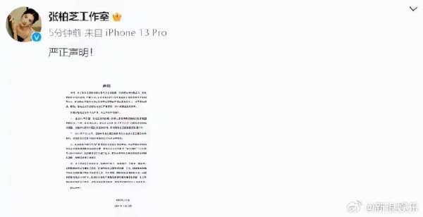 张柏芝工作室第一时间发声明:纯属造谣!不实信息!
