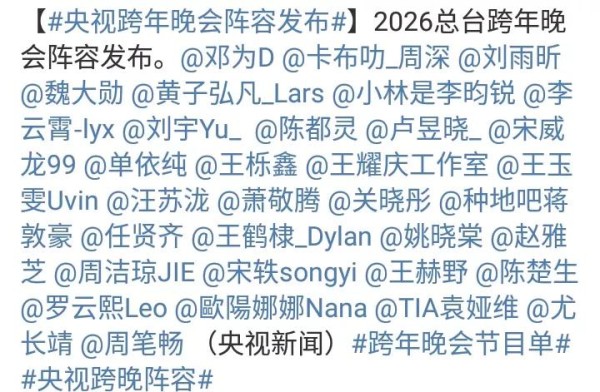 因为,2026央视跨年晚会的演出阵容非常强大!