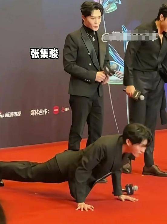申浩男则似乎对自己的身材有些自信不足,只是略微抬了抬胳膊,表示性格很低调。而最搞笑的就是张集骏,竟然直接趴在红毯上做俯卧撑,完全出乎意料,红毯瞬间变身成了健身房。柯淳则用手指轻轻触碰鼻子,露出一抹霸总式的微笑,然而这动作怎么看都像是向佐的招牌,尴尬得简直让人想捂脸。