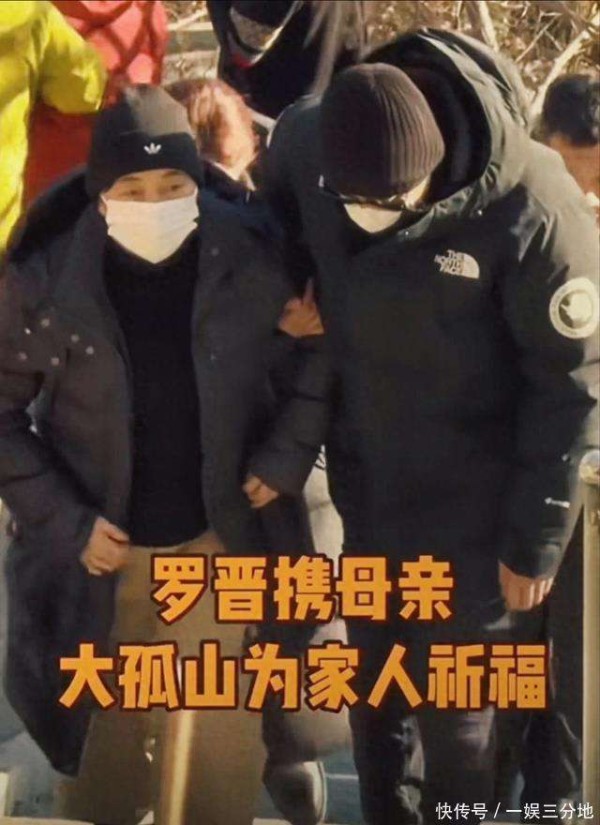 在大孤山,一位路人偶遇了男演员罗晋,他正搀扶着母亲一同前来祈福。母子二人脸上神情凝重,显得十分严肃。罗晋全身裹得严严实实,穿着一件黑色的棉服,戴着帽子、墨镜和口罩,似乎不希望被人认出来。