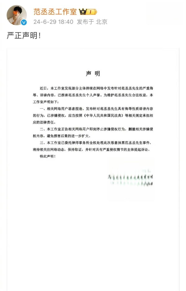 范丞丞工作室的声明堪称模糊处理的典型案例。声明否认了特定指控(如与司晓迪的单独会面),但并未过度展开,同时强调法律手段。这种方式适用于证据模糊的争议,既表明了立场,又避免了过度曝光私生活。