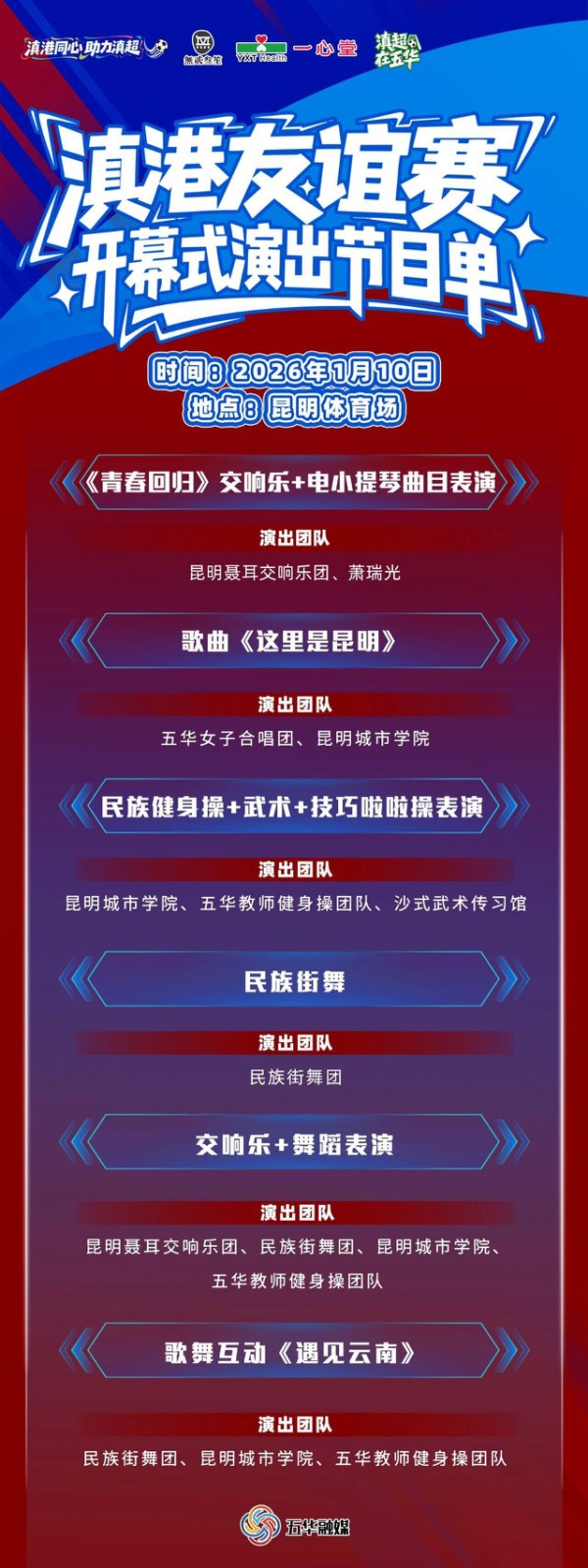 除了香港明星的倾情演出,活动同样极具云南本土特色。昆明聂耳交响乐团、五华女子合唱团、民族街舞团等多个本地优秀表演团体将联袂登台,带来交响乐、合唱、民族健身操、武术等多元化的精彩表演,展现滇港两地的文化交流与融合。